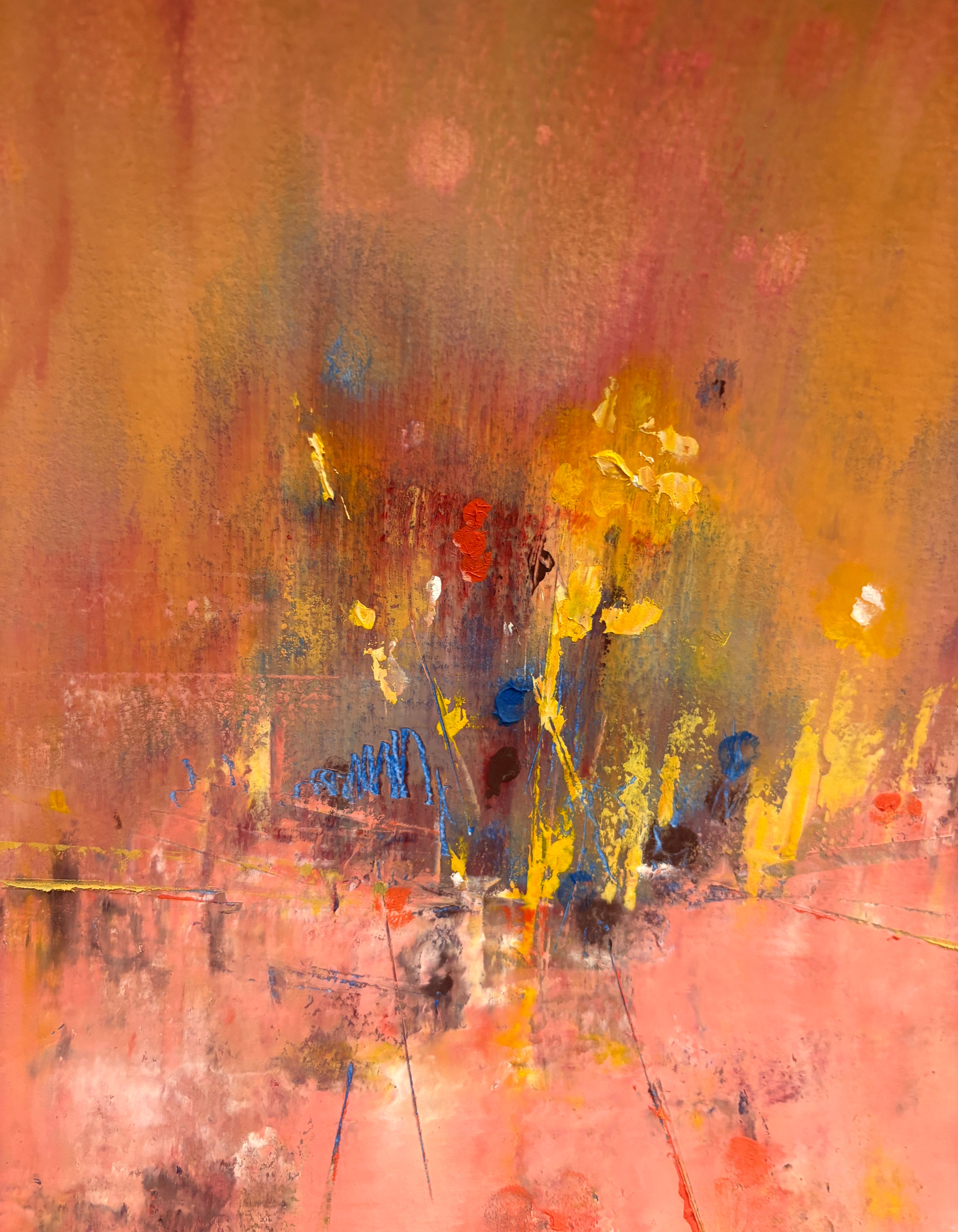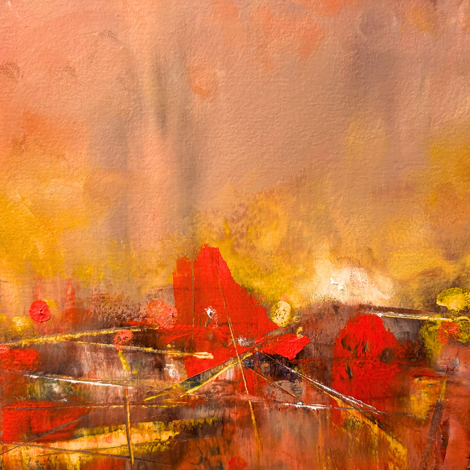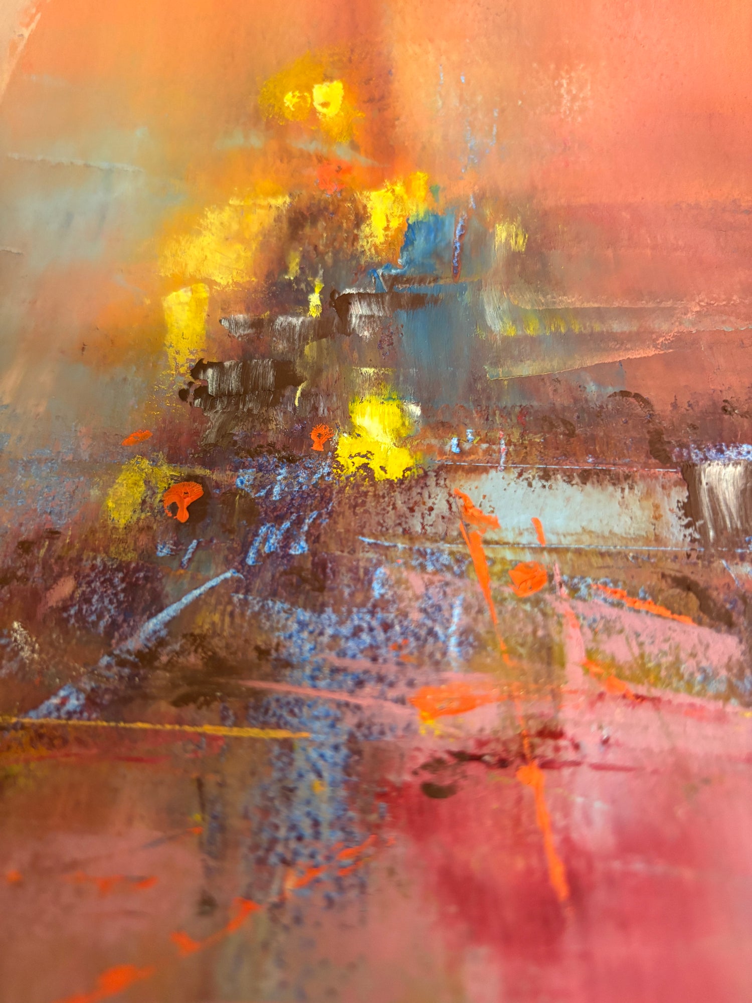 Cold wax is a mixture of solvent, resin, and beeswax. When mixed with oil paint it creates a buttery soft texture that is such a joy to work with. It enables scrapes, revealing underneath layers, providing visual interest with high ridges in the paint with peaks and valleys, retained brush strokes and palette knife marks.