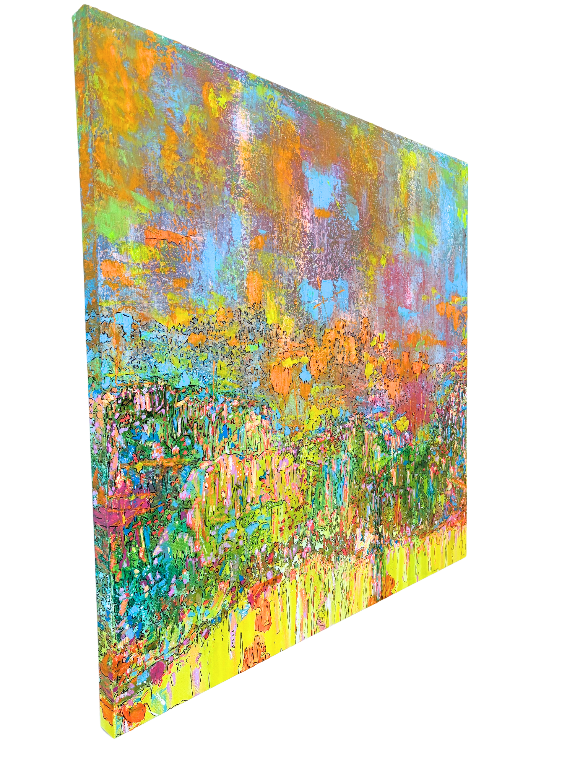 "Calamity of Color" - This piece is heavily textured / I used heavy molding paste with the acrylic paint to retain palette knife marks and brushstrokes. Finished with Liquitex acrylic paint marker and sharpie line work.