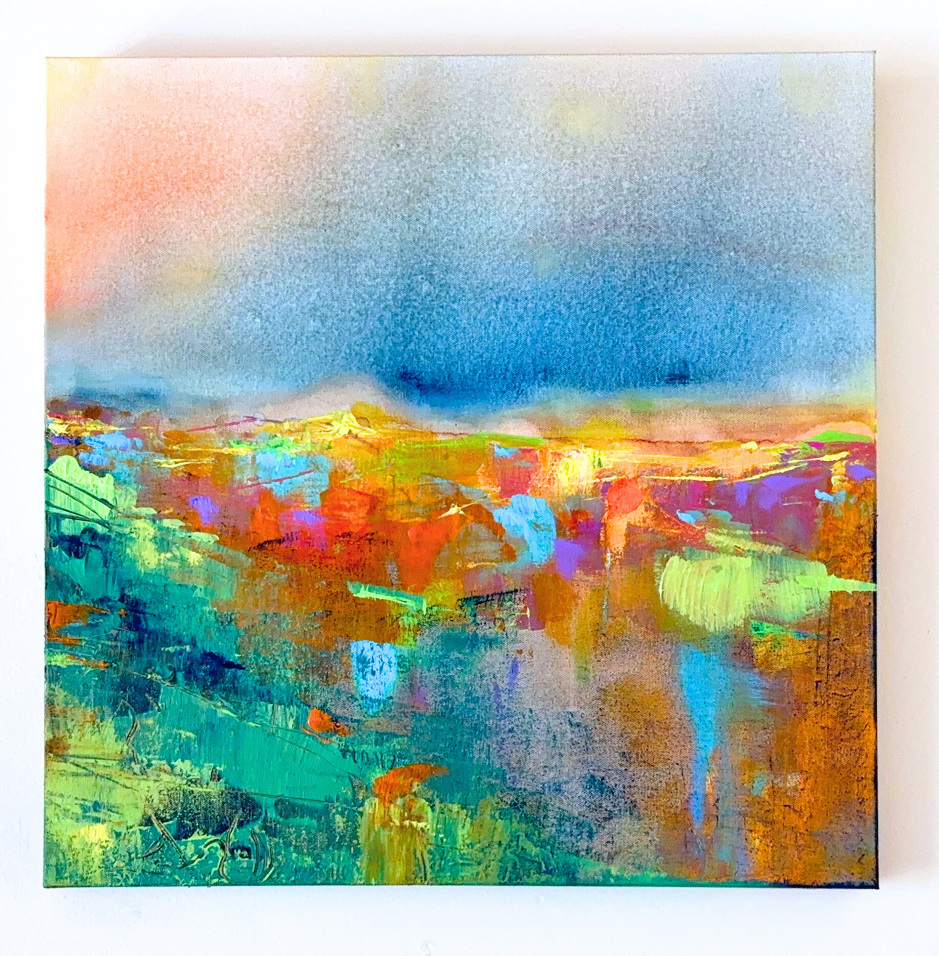 “Urban Glow” - This painting reminds me of looking down at a city from a vista above, where city lights glow softly yet with an energetic & electric energy.